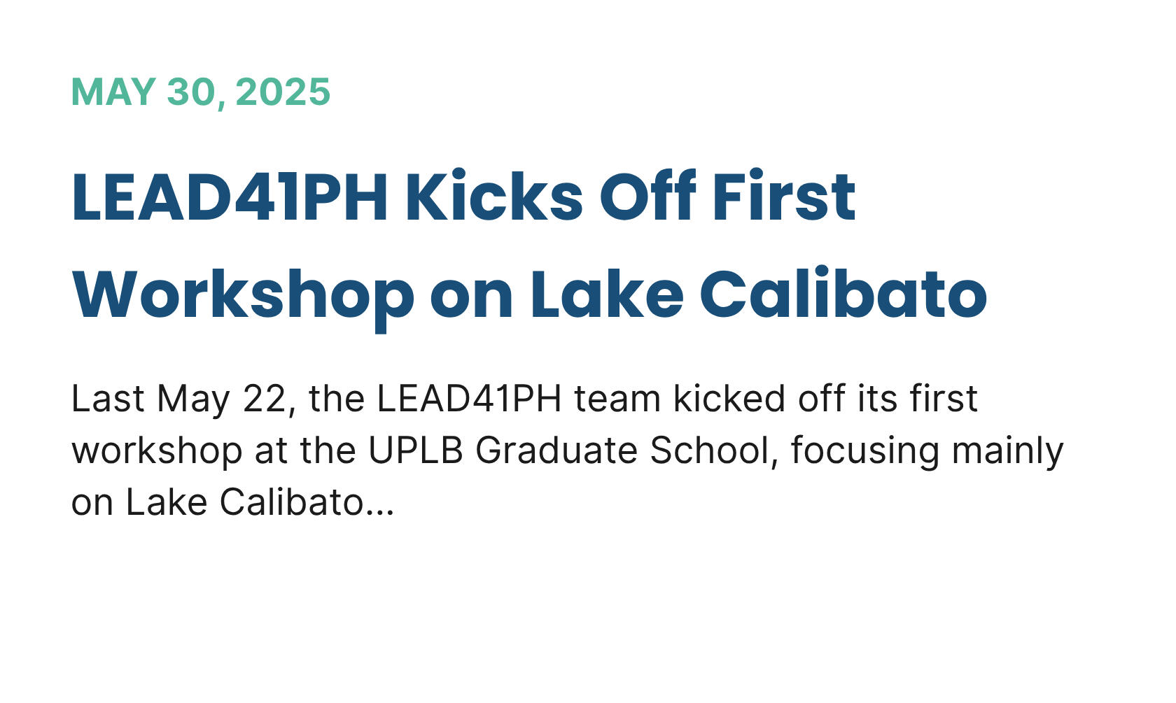 Last May 22, the LEAD41PH team kicked off its first workshop at the UPLB Graduate School, focusing mainly on Lake Calibato...