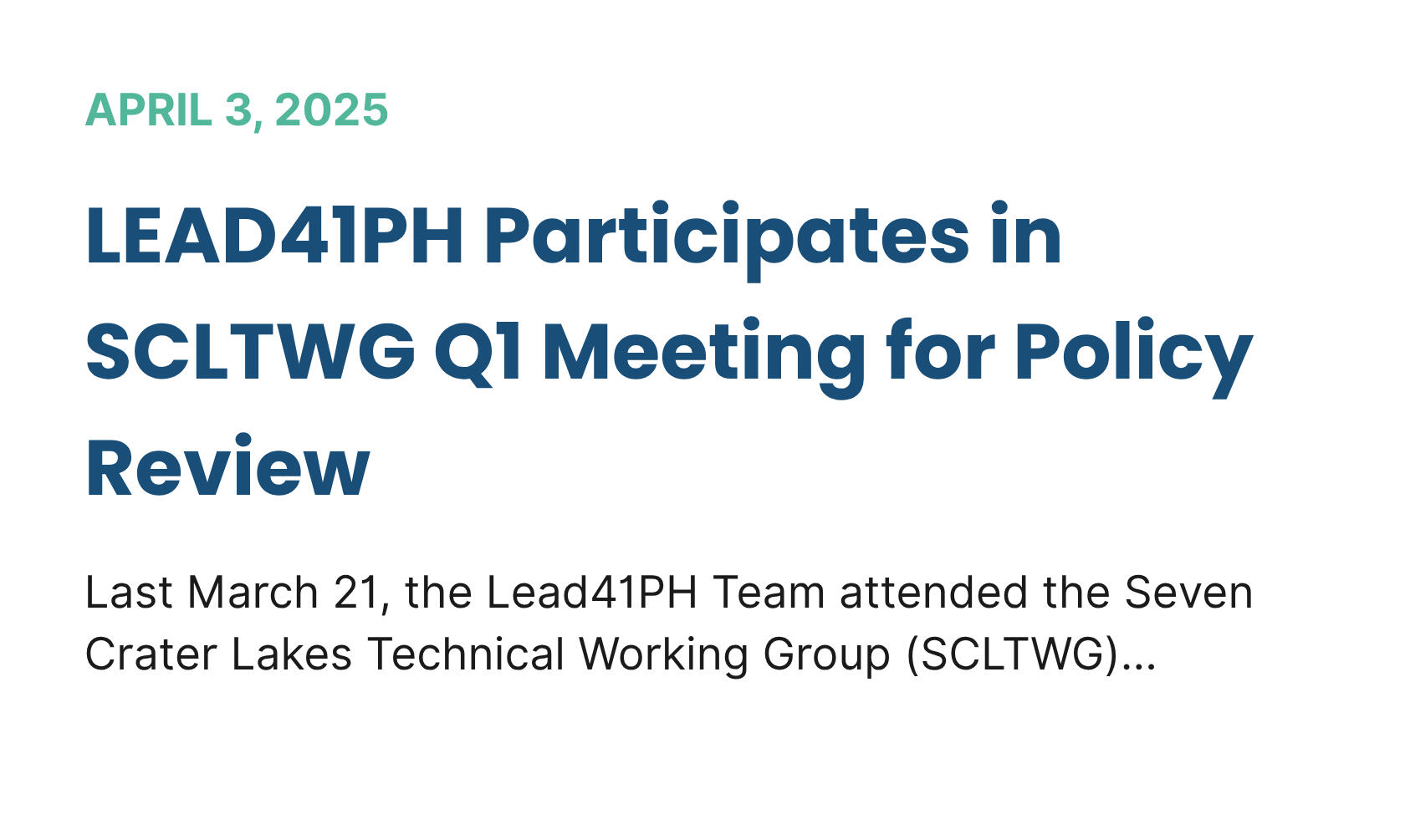 Last March 21, the Lead41PH Team attended the Seven Crater Lakes Technical Working Group (SCLTWG)...