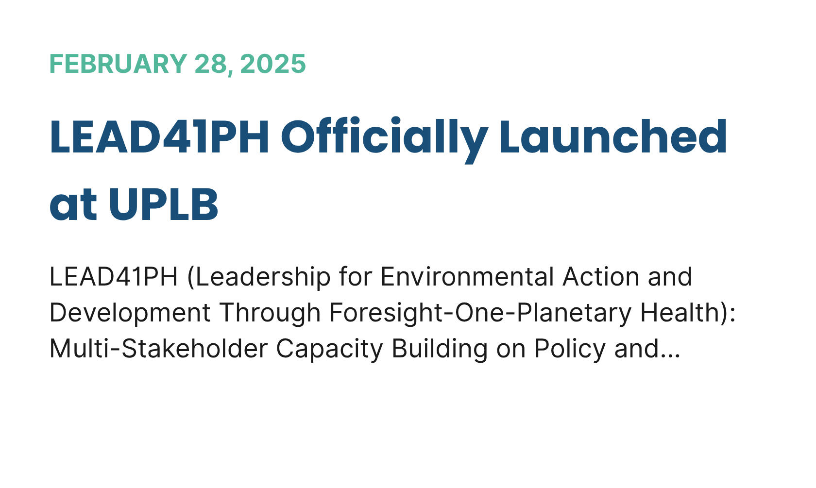 LEAD41PH (Leadership for Environmental Action and Development Through Foresight-One-Planetary Health): Multi-Stakeholder Capacity Building on...