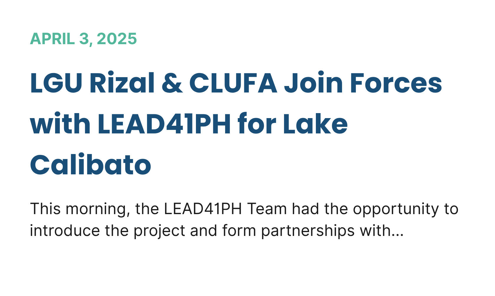 LGU Rizal & CLUFA Join Forces with LEAD41PH for Lake Calibato